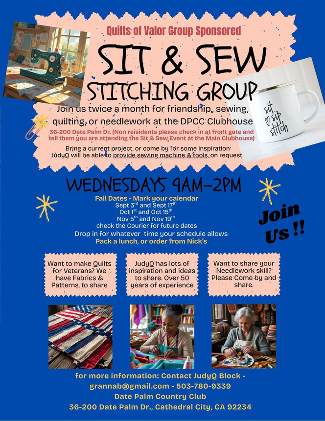 Centrally located in the beautiful Coachella Valley of Southern California. The Guild shall be a non profit organization established to promote appreciation of quilting, to share and to uphold the heritage of a timeless folk art, and to further the education and skill levels of the members of the guild.